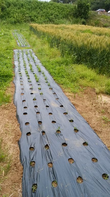 麦藁は稲藁よりも水弾きが良いので野菜のマルチに最高です。