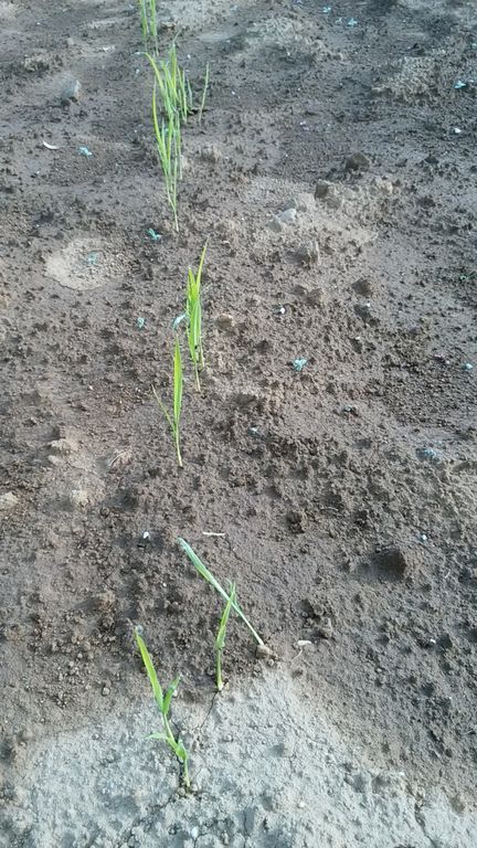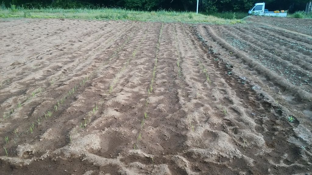 播種後、強い雨が降って地面をたたき固められたので、半分ぐらいしか地上に至らなかったけど、それも計算のうちで、密に播種していて良かった(^^v