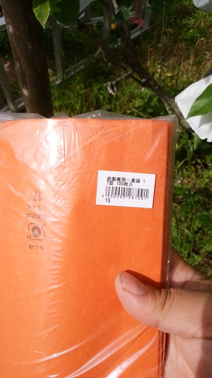 残りの時間は苗に散水と昨日ホームセンターで梨用の袋を買ってきたので、袋がかかっていないものに袋掛けします。