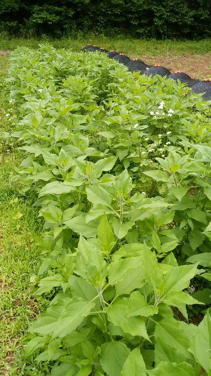 因みに所々にある小さい白い花は去年のこぼれ種から出たソバです。